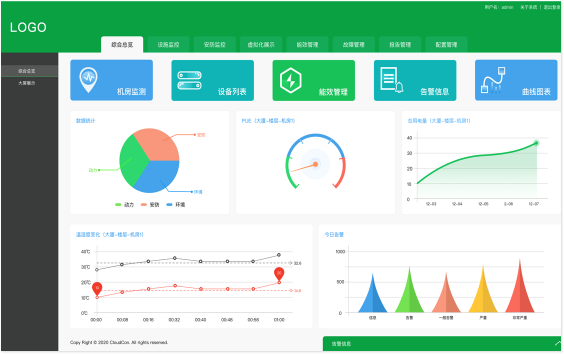1.基于DCE系統進行大屏展示其數據中心基礎設施運行情況