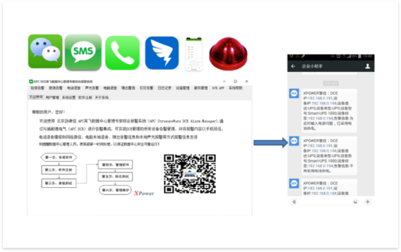 北京勁源信 英飛數據中心管理專家綜合報警平臺(XPower StruxureWare DCE Alert Manager),通過與施耐德電氣(APC)SW DCE進行告警集成,可實現SW DCE管理的所有設備告警管理,并將報警內容以手機短信(SIM卡發(fā)送)、手機短信(短信網絡平臺發(fā)送)、電話語音播報、網絡微信、阿里釘釘、本地電腦語音、彈出報警信息窗口和現場聲光報警等方式報警信息發(fā)送和手機APP提醒數據中心管理人員,使其能較快處理,以保證數據中心安全可靠運行!